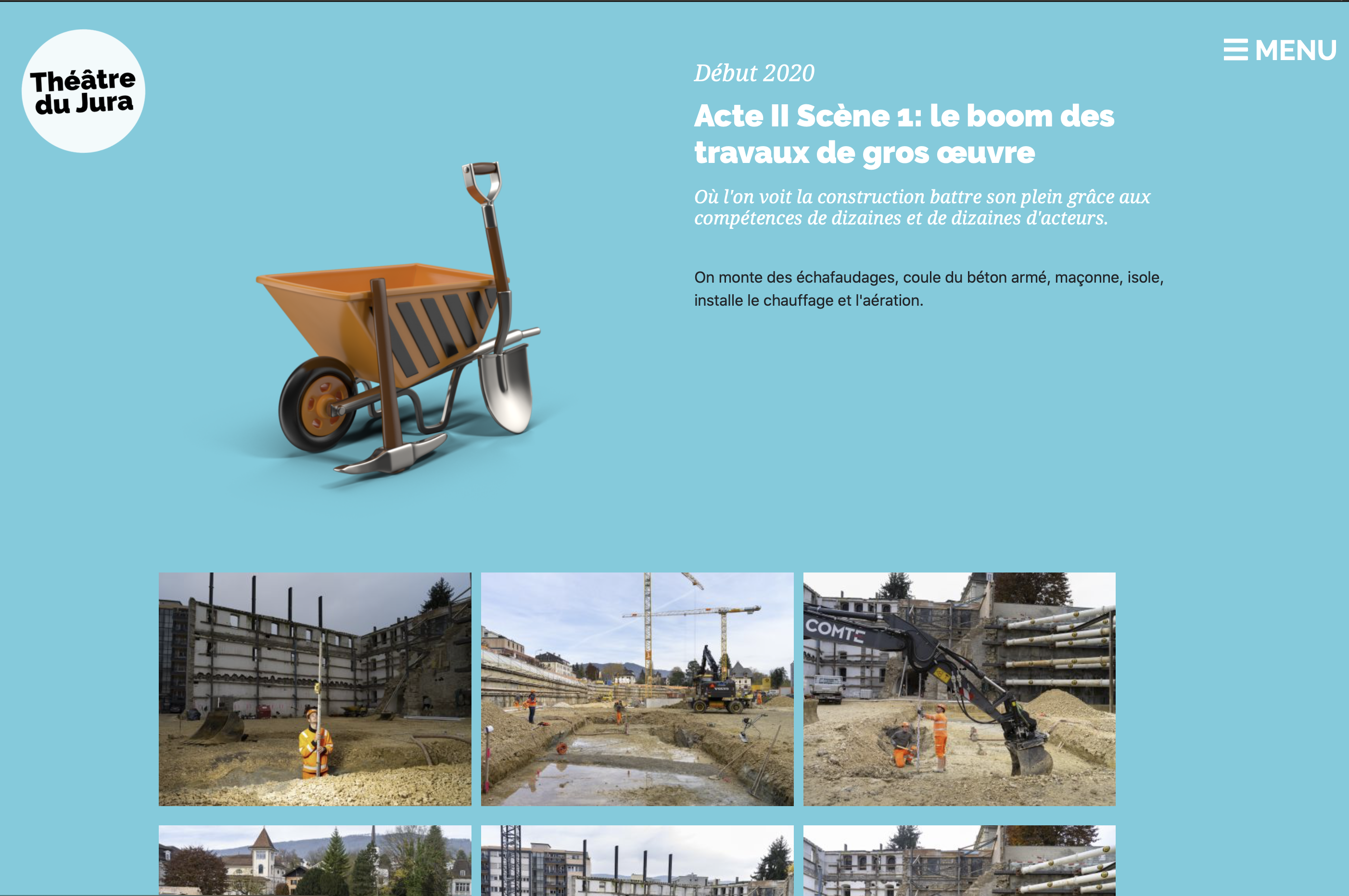 Stratégie de communication, site internet temporaire qui raconte l'aventure du Théâtre du Jura, création de différents supports de communication.